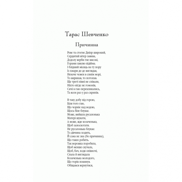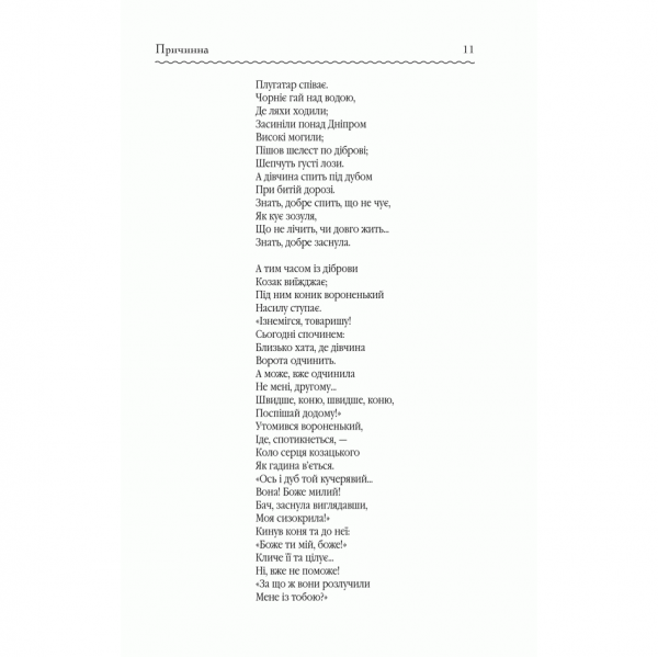 Це прозові та поетичні твори визнаних майстрів слова, класиків вітчизняної літератури. До збірки увійшло 14 творів 8 відомих українських письменників, серед яких Т. Шевченко, Г. Квітка-Основ`яненко, І. Нечуй-Левицький, Л. Українка, І. Франко, М. Хвильовий та ін. Вони подарують щиру насолоду шанувальникам української літератури.